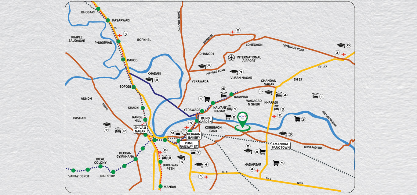 Residing at Adani Atelier Greens Pune, you can seamlessly get across to the prominent business zones across the city. The railway station and airport in Pune lie 3 Km. and 6 Km. away from the complex, respectively. It would be a good decision for corporate professionals and millennials to get their apartments in this gated community. This ensures that they can get across to their desired areas in the city in quick time. Several banks, multiplexes, schools, hospitals, colleges, markets, and shopping malls are located in a close proximity to the complex. This would be a good opportunity for you to purchase your dream apartment in the estate.